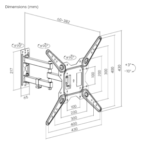 The LPA68-443 Economical Full-Motion TV Wall Mount accommodates most 23″-65″ flat-panel TVs up to 30kgkg/66lbs. Its full-motion capabilities allow a +3°~-10° tilting and a +90°~-90° swiveling of your TV, which maximizes the flexibility for easy viewing from different angles in the room. The integrated cable clip keeps cables organized and protected.